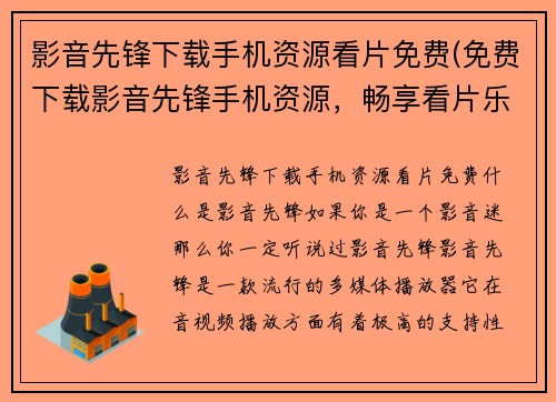 影音先锋下载手机资源看片免费(免费下载影音先锋手机资源,畅享看片乐趣)